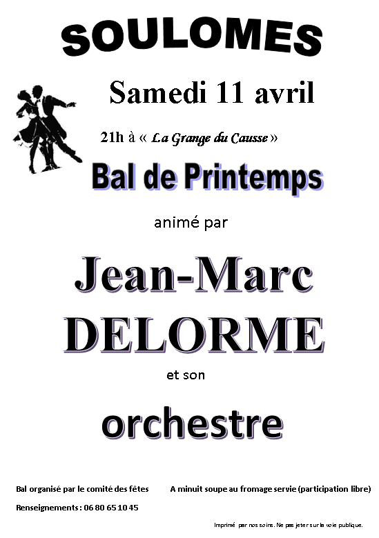 Rendez-vous à partir de 21h à la Grange du Causse, animé par Jean-Marc DELORME et son orchestre.